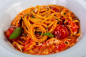 Makaron (tagliatelle) z pomidora i mozzarelli