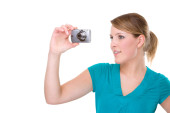 kobieta z cyfrowy aparat fotograficzny