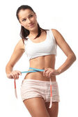 Młoda szczęśliwa kobieta w sportowym stroju