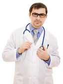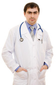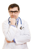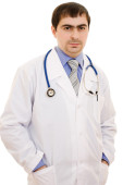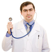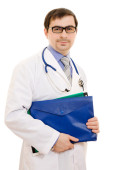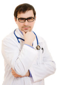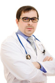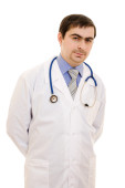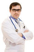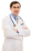 lekarz stetoskop umieszczone ręce krzyż na białym tle.