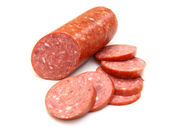 Wędzona kiełbasa salami na białym tle