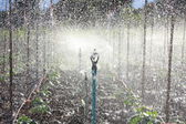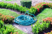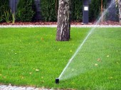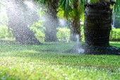 Systemem zraszania wodą trawnik.