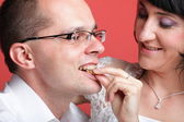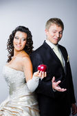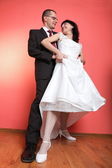 szczęśliwy uśmiechający się panna młoda i pan młody