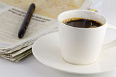 filiżankę gorącej kawy i gazety