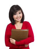 całkiem młody biznes kobieta trzyma długopis głową