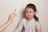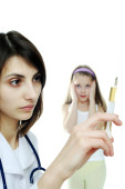 Dziewczyna pokazuje do lekarza strzykawki z medycyny