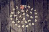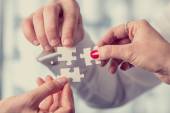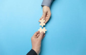 Dwie ręce, samiec i samica, pasujące dwa kawałki układanki w pi