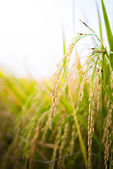 Ryż niełuskany, z bliska i zielone tło