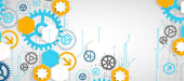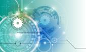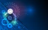 Wektor ilustracja koła zębatego, sześciokąty i płytka, Hi-tech cyfrowych technologii i inżynierii, koncepcja technologii cyfrowej telekomunikacji