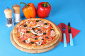 Zdjęcie "aromatyczna pizza z cola na niebieskim tle" może być wykorzystywane do celów osobistych i komercyjnych zgodnie z warunkami zakupionej licencji Royalty-free. Obraz jest dostępny do pobrania w jakości wysokiej rozdzielczości do 5760x3840.