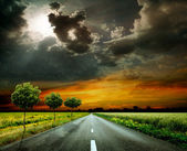 Większość asfaltowej drogi. Płytka głębia ostrości