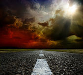 Większość asfaltowej drogi. Płytka głębia ostrości