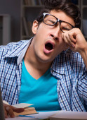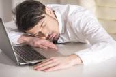 biznesmen nudzi siedząc przy biurku ziewa. młody wieloetnicznym Łacińskiej kaukaski działalności człowieka w jego biurze
