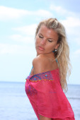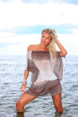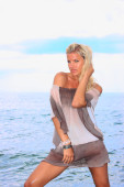 młoda kobieta sexy stwarzające na plaży