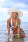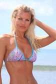 młoda kobieta sexy stwarzające na plaży