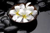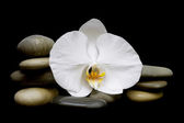 Biała orchidea i kamienie na mokrej powierzchni odbicia