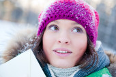 Zdjęcie "młoda kobieta piękne Noszenie odzieży zimowej i gry na zewnątrz. trzymając jej ręce w pobliżu jej głowę i pokazuje zabawny królik" może być wykorzystywane do celów osobistych i komercyjnych zgodnie z warunkami zakupionej licencji Royalty-free. Obraz jest dostępny do pobrania w jakości wysokiej rozdzielczości do 5760x3840.