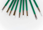 Green Nylon coated fiber optic cable with stripped and exposed fibers lit by green laser