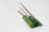 Nylonem zielony kabel światłowodowy z obnażony i narażonych włókien na czarnym tle