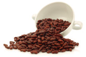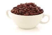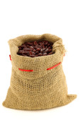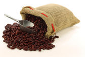 czerwona fasola w płótnie torby i szufelka aluminiowa