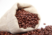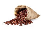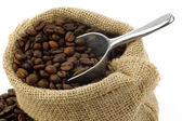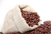 czerwona fasola w płótnie torby i szufelka aluminiowa