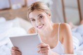 Zdjęcie "Nastolatka przy użyciu przenośnych typu tablet." może być wykorzystywane do celów osobistych i komercyjnych zgodnie z warunkami zakupionej licencji Royalty-free. Obraz jest dostępny do pobrania w jakości wysokiej rozdzielczości do 5760x3840.