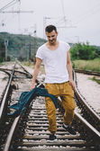 mężczyzna stojący w pobliżu starej stodole