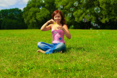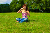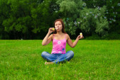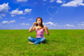 dziewczyna dmuchanie bańki mydlane