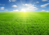 Piękną wiosnę krajobraz: zielone pole żyta