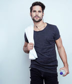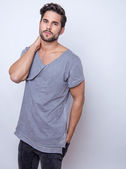 przystojny młody mężczyzna pozowanie w casual ubrania