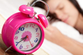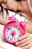 piękna kobieta i budzik