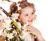 dziecko z kwiatem wiosna.