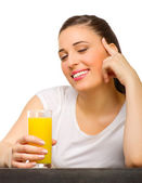 młoda kobieta ze soku pomarańczowego