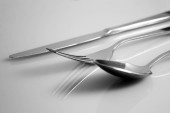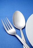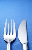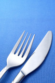 widelec i nóż na serwetce niebieski