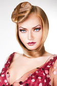 blond dama sexy niebieskie oczy i włosy wokół szyi
