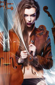 piękne erotyczne sexy kobieta w kurtkę z skrzypiec
