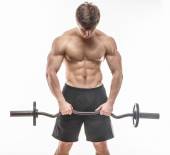 Zdjęcie " Mężczyzna robi ćwiczenia ze sztangą." może być wykorzystywane do celów osobistych i komercyjnych zgodnie z warunkami zakupionej licencji Royalty-free. Obraz jest dostępny do pobrania w jakości wysokiej rozdzielczości do 5760x3840.