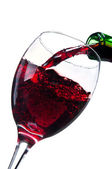 nalewanie wina czerwonego w szklany kielich na białym tle