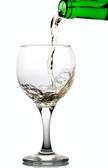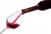 nalewanie wina czerwonego w szklany kielich na białym tle