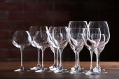 Zdjęcie "Budowy puste kieliszki i butelkę na drewnianym stole przeciwko tło zamazane pole" może być wykorzystywane do celów osobistych i komercyjnych zgodnie z warunkami zakupionej licencji Royalty-free. Obraz jest dostępny do pobrania w jakości wysokiej rozdzielczości do 5760x3840.
