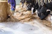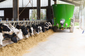 Jeść siano w duże obory krów.
