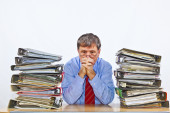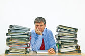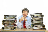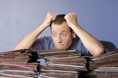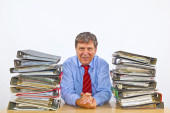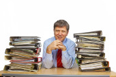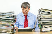 człowiek badania folderu z plikami przy biurku w biurze