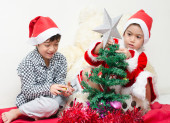 Mały chłopiec zajęty pracą na choinkę na uroczystości