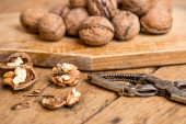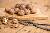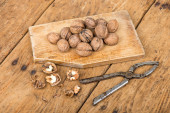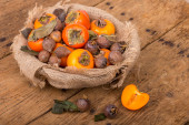 Zdrowe Medlars dojrzałe na starym drewnianym stole