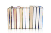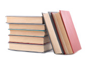 Książki w wysokim stosie izolowane na białym