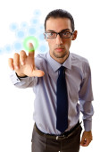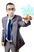 Biznesmen wciskający wirtualne przyciski