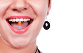 piękna dziewczyna biała guma do żucia, uśmiechając się