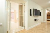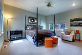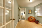 przedpokój z bilardowe ankiety i czerwona kanapa w pobliżu mały bar.
