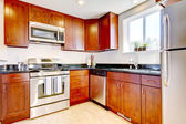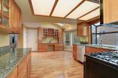 duża luksusowa i nowoczesna kuchnia drewna z blaty granitowe.