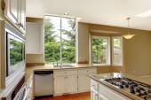 duża luksusowa i nowoczesna kuchnia drewna z blaty granitowe.